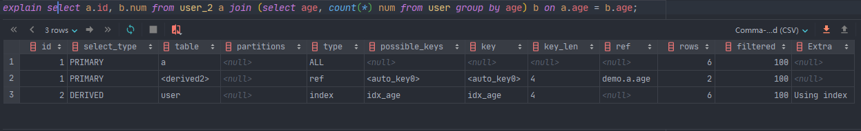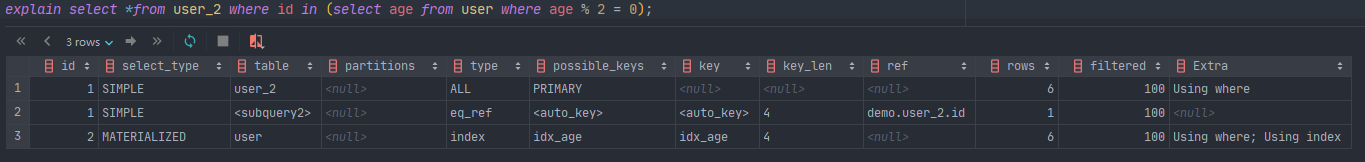 额外一些信息,这里会表示是否使用 文件排序 、临时表、覆盖索引、条件过滤等等